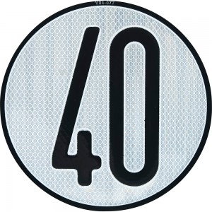 Placa límite de velocidad 40 Km/h.